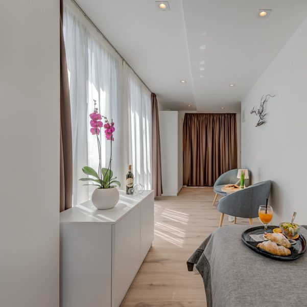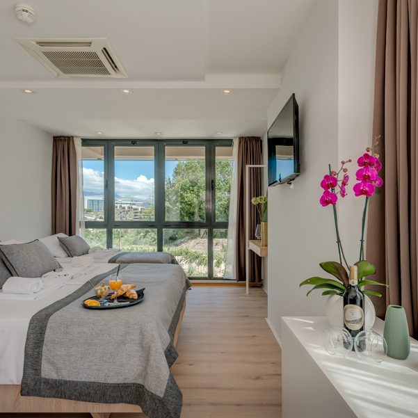 Moderno uređene Superior sobe za smještaj do tri osobe, s pogledom na vrt i zelene površine koje okružuju hotel, gostima pružaju jedinstveni ugođaj i vrhunsku udobnost.