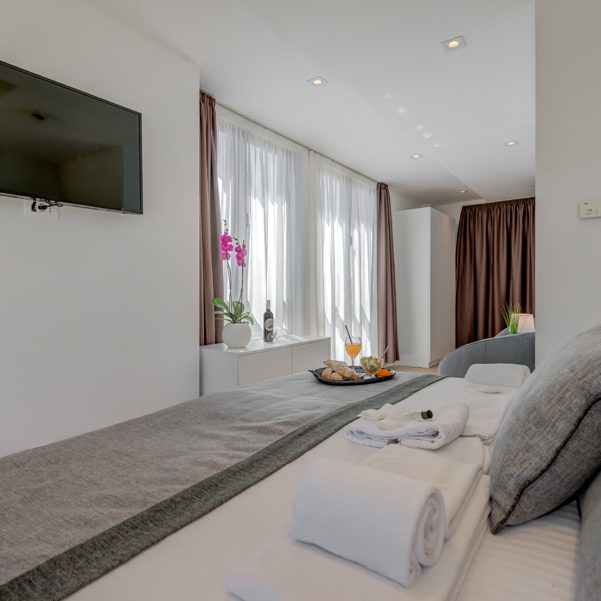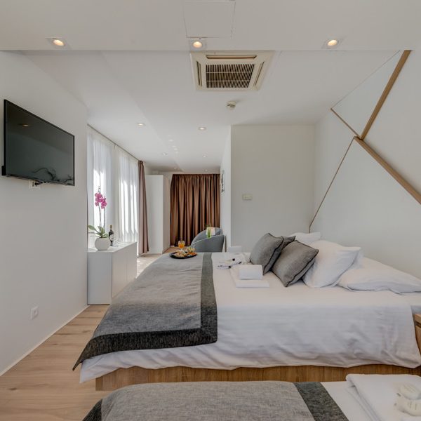 Opremljene su udobnim bračnim krevetom i udobnim krevetom za jednu osobu, flat screen TV-om, hladnjakom, radnim stolom, sefom za vrijednosti, prostranim ormarom te modernom kupaonicom sa tuš kadom što ih čini pogodnima i za duže boravke.